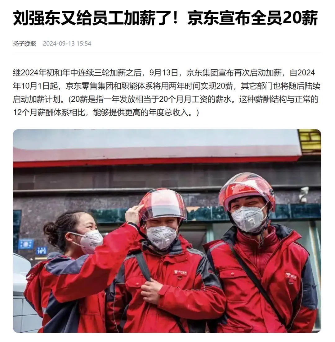 新聞稿上宣傳的 “全員 20 薪”,實際上只有極少數人能拿到。京東內部很多人其實很反感這種形式主義。
