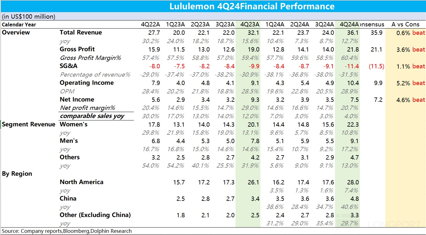 $露露樂蒙(LULU.US) 以下是 Lululemon FY24 四季度的財報電話會紀要,財報解讀請移步《Lululemon:“小黑褲 “不靈了,瑜伽界愛馬仕被雙殺嗎? - 》