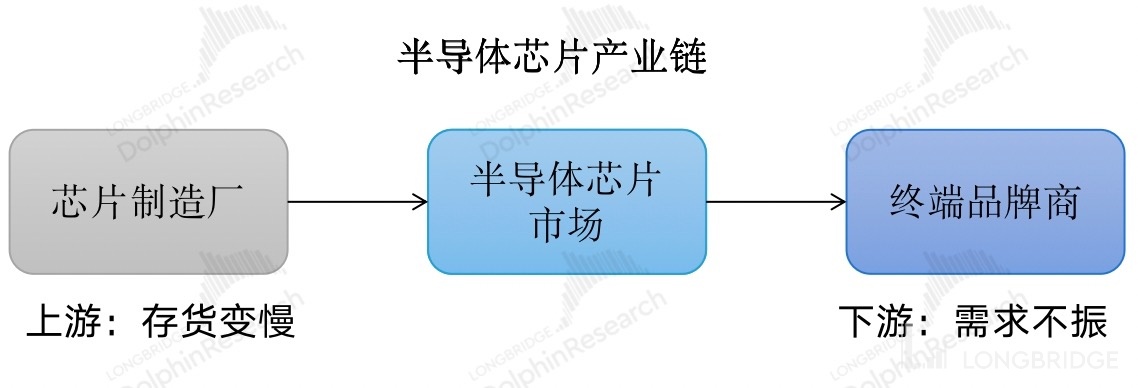 半導體由於是製造業的屬性,庫存情況成為觀察半導體週期的重要指標。從產業鏈情況看,半導體芯片的上游是芯片製造廠,下游是終端品牌商。從各主要廠商的庫存數據看,觀察半導體行業的當前週期狀況。