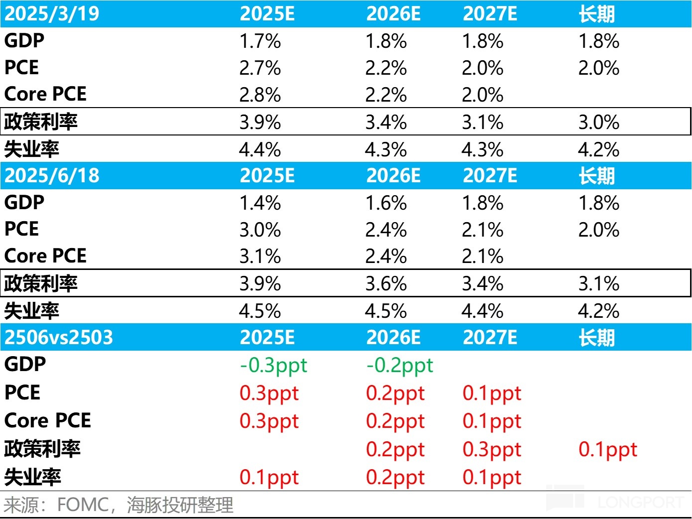 這次會議的關鍵是經濟展望的更新,而正在這一點上,美聯儲體現得非常鷹派,明年 5 月任期到期的美聯儲主席鮑威爾顯得非常頭鐵,具體展望的變化上:
