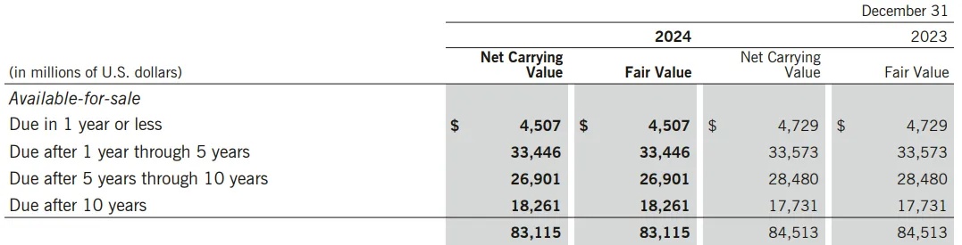2Q 公司調整後投資收入達到 16.9 億美元,同比增長 7.9%。根據 24 年報,公司總投資資產中 89% 為固收產品,而其餘 11% 為另類資產投資,包括私募股權和信貸,而未來隨着投資資產的提高,公司會將流動性較低的私人投資的配置比例從 11% 提高到 15%。用長期債券鎖定高票息,再用流動性高的短期債券,靈活應對美聯儲議息。且固收產品中買進的債券 83% 為 BBB 級 + 債券,違約風險較低。