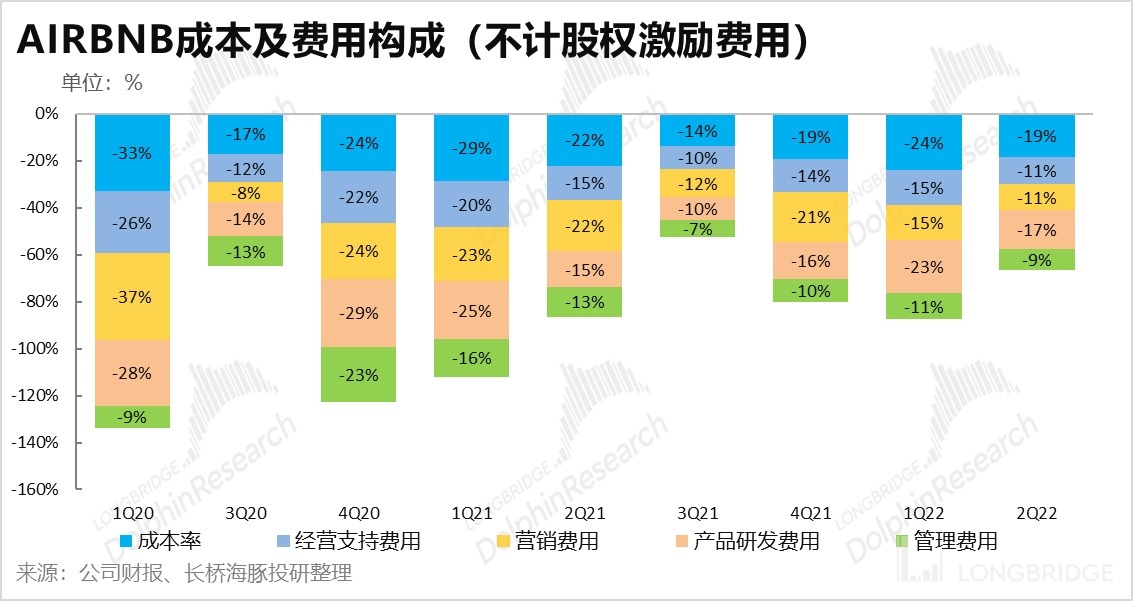 由於 Airbnb 上市不久,股價激勵費用支出規模較大且波動顯著,因此在看成本和費用時採取剔除股權激勵費用後的口徑,以更好的觀察公司費用的變動趨勢。