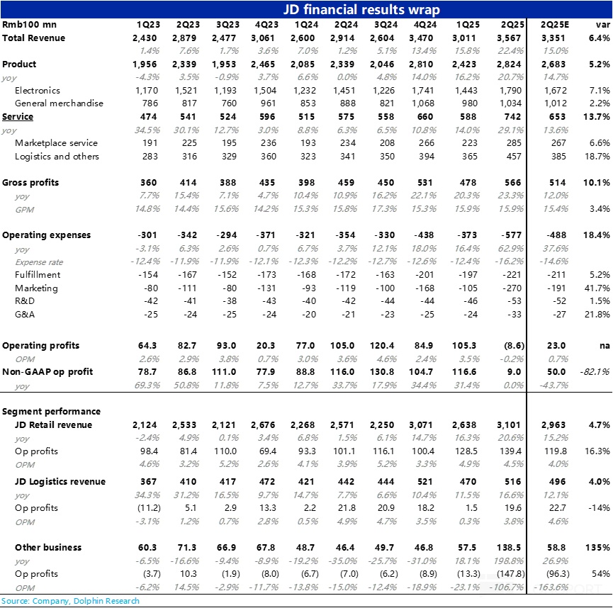 以下為海豚投研整理的$京東(JD.US) FY25Q2 的財報電話會紀要,財報解讀請移步《京東:百億利潤一鍵清空,外賣夢還能挺多久?》