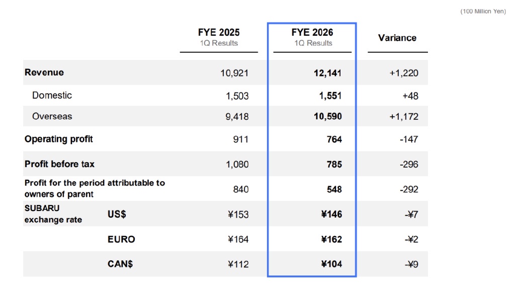 2025 年 Q2(2026 財年第一季度)斯巴魯交出了一份看似矛盾的成績單:銷量飆升,利潤卻顯著下滑。