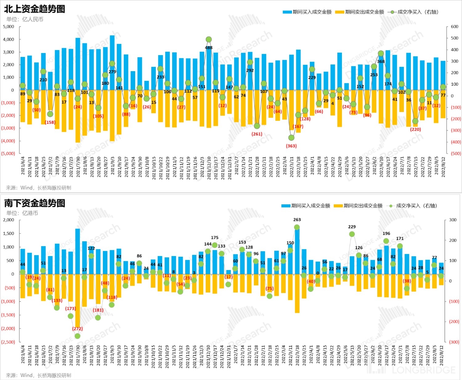 在股市普漲的背景下,南下和北上資金都在相互加倉,不過市場交易熱情並不高,無論是買賣總成交額還是淨買入額都顯著萎縮。