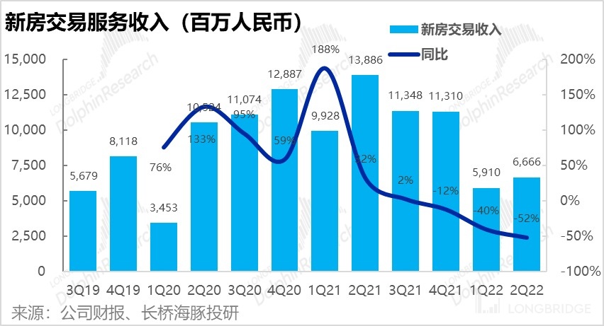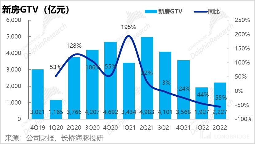 但同比來看,相比新房進入冰封期前,變現率還是略有提高,因此新房業務營收同比下滑 52%,低於 GTV 的下降幅度。