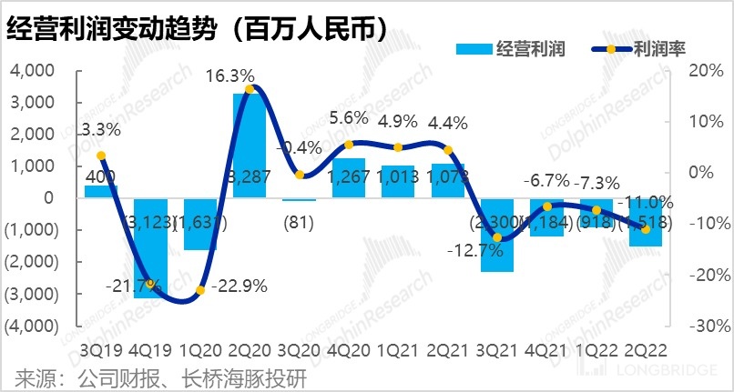 因此,雖然毛利率提升了 2pct,由於費用率的大幅提升,經營利潤率還是環比由-7.3% 惡化到-11%。經營虧損也有 9.2 億擴大到 15.2 億。即便剔除了股權費用後,經營虧損也由 5.7 億擴大到了 9.1 億。