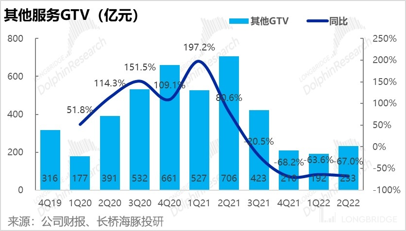 本季由金融服務和家裝維修構成的其他服務 GTV 為 233 億元,同比暴跌 67%,降幅在三大業務板塊中表現最差。