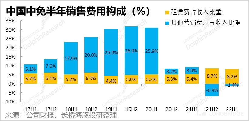 不過,剔除租金變動影響後,其他營銷費用在上半年還是同比增加了 17.7% 到 22.7 億元,而這反映的是,機場渠道之外,中免在離島免税市場面臨的競爭整體上還是在加劇的(雖然二季度的疫情暫緩了競爭)。