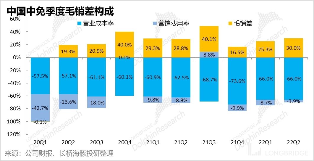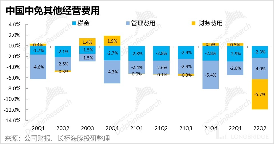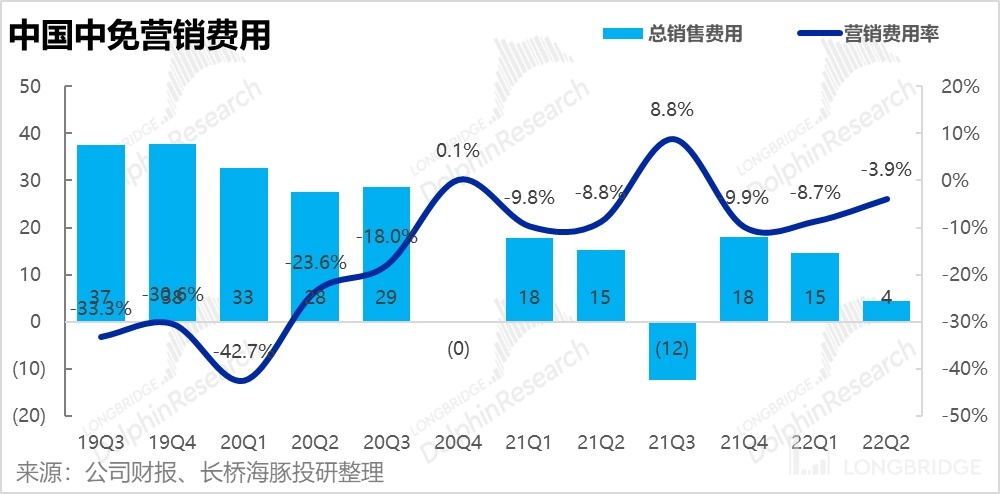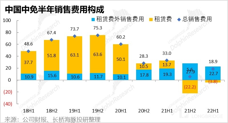 但如公司先前公告,本季營銷費用顯著下降的主要原因還是與廣州白雲機場重籤租金合同後,返還的機場門店租金費用(據測算返還約在 7 億元左右)。而根據公司半年報披露的營銷費用詳細構成,可見 22 年上半年確認的租賃費是收入 3.8 億元。自 21 年下半年開始,中免反而連續從機場處 “收取” 租金。而這本質上提現的也是機場客流減少後,機場方和中免在機場免税渠道中的議價能力此消彼長,即中免在行業上下游中地位的提升。(不過出於相同的原因,一旦機場客流恢復,機場重新奪回租金定價權也基本是必然事件)。