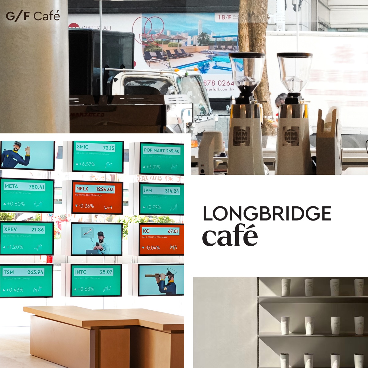 G/F:世界級咖啡體驗 —— 由香港冠軍咖啡師 Timmy Lam 親自主理,嚴選高質咖啡豆,每一杯咖啡都用心製作。特別推薦融入投資概念的「Options」特調咖啡,歡迎前來品嚐!所有長橋已開戶之用戶,每天均可享有一杯半價精品咖啡,品味優質生活時光。