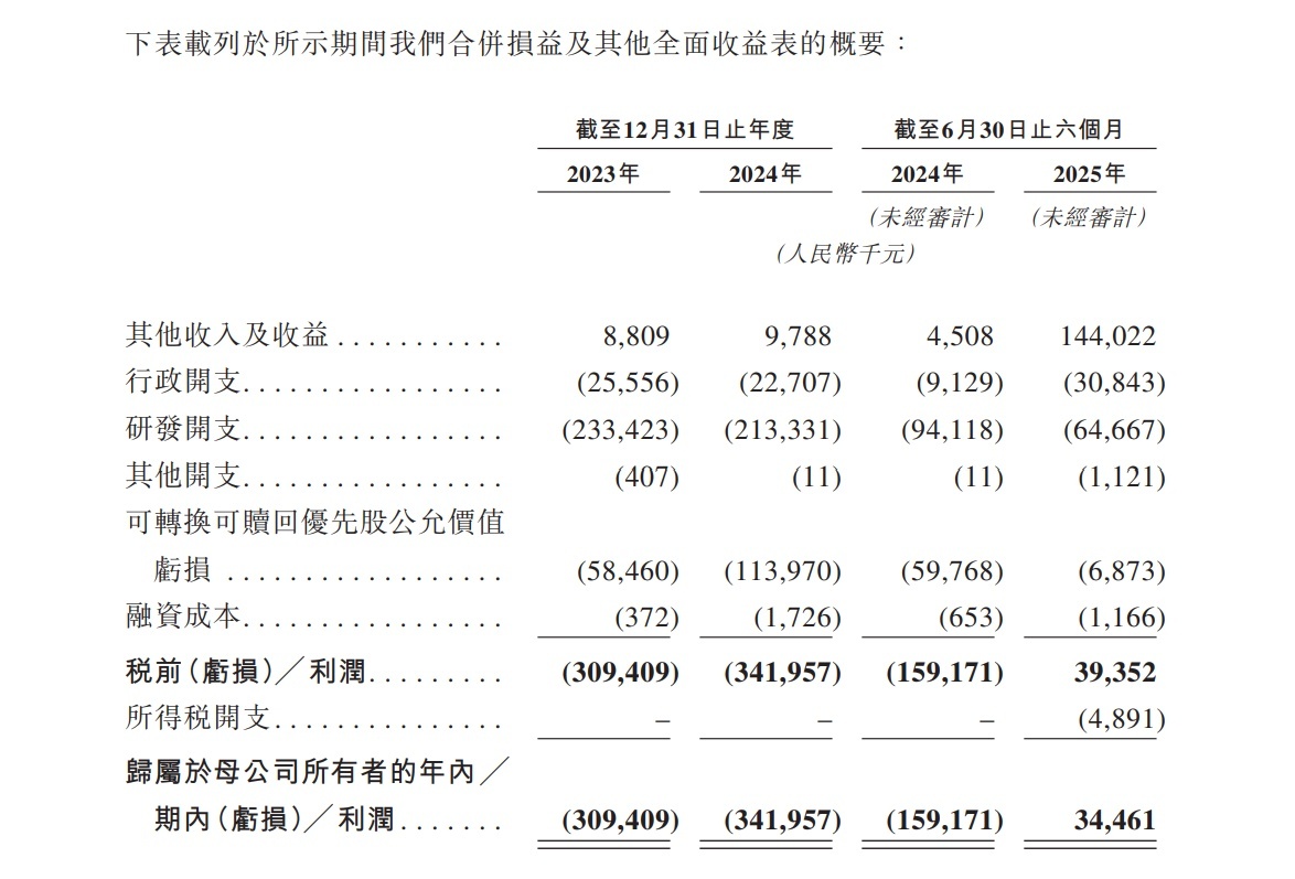 招股書顯示,由於並未進入商業化階段,2023-2025 年上半年,靖因藥業總營收始終為 0,期內利潤分別為-3.09 億元、-3.42 億元、3446.1 萬元。其中,今年上半年實現盈利,主要系公司與 CRISPR 合作獲得首付款項時收到的 CRISPR 股份的公允價值變動。