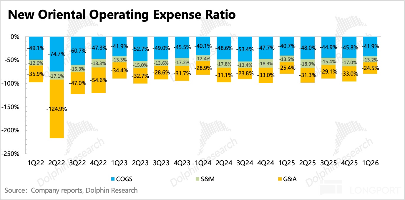 4、全年指引不變:目前 2026 財年收入指引仍是 5%~10% 的同比增長(和上季度一樣),只能打消留學業務不受控惡化的擔憂。但從趨勢上看,下半年在新業務的增速回暖下,管理層對留學業務的風險預留了更多的緩衝空間。
