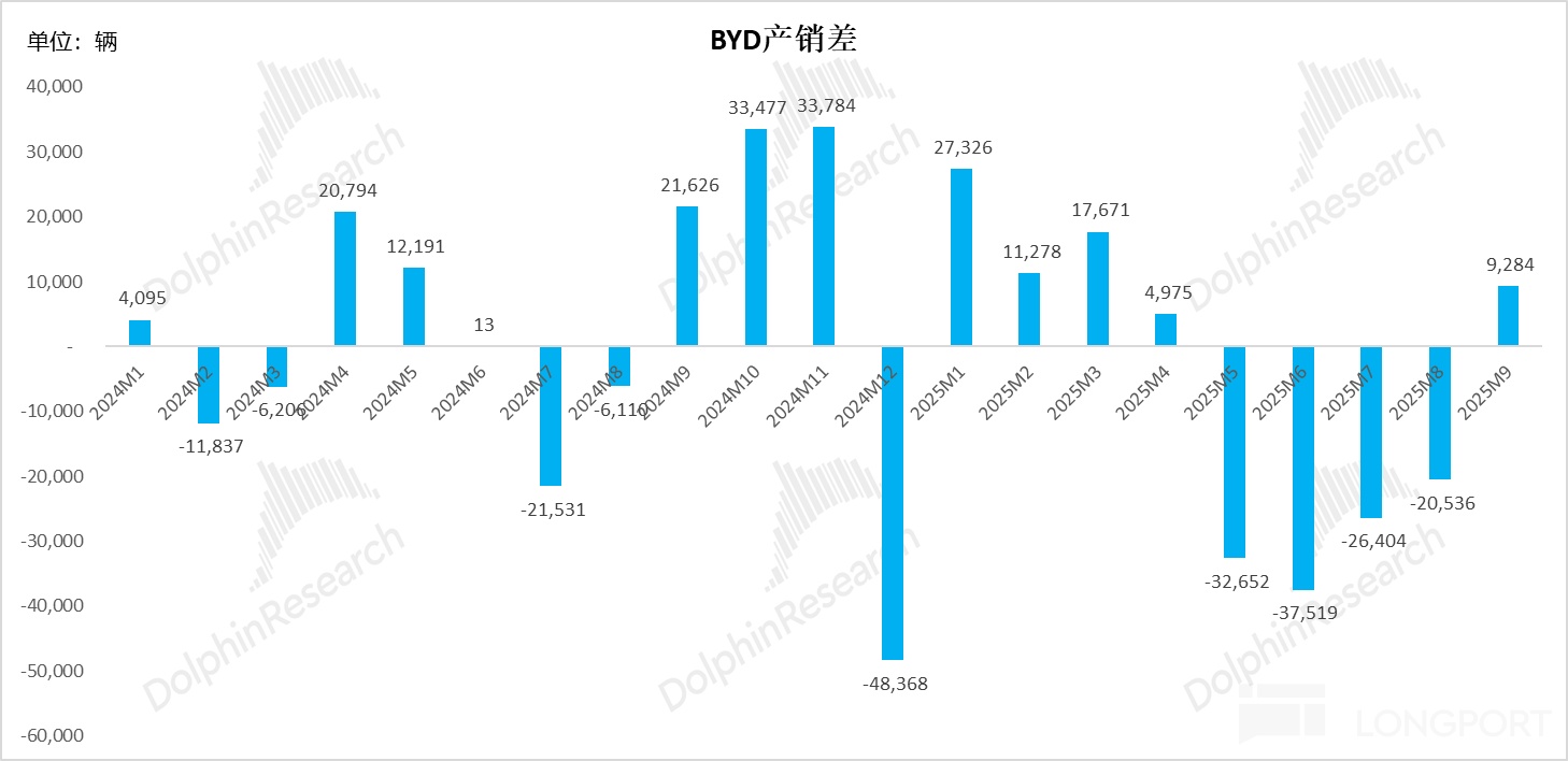 a. 自身產銷差:自今年 5 月後,已經看到比亞迪很明顯的去庫存趨勢,5 月-8 月連續 4 個月的產量都要持續低於銷量。