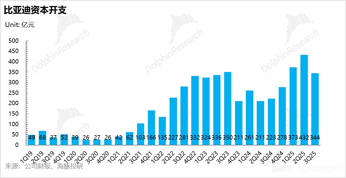 ① 比亞迪的資本開支節奏本季度有所放緩,固定資產也環比上季度有所下滑,預計三季度整體攤折金額可能有所下滑;