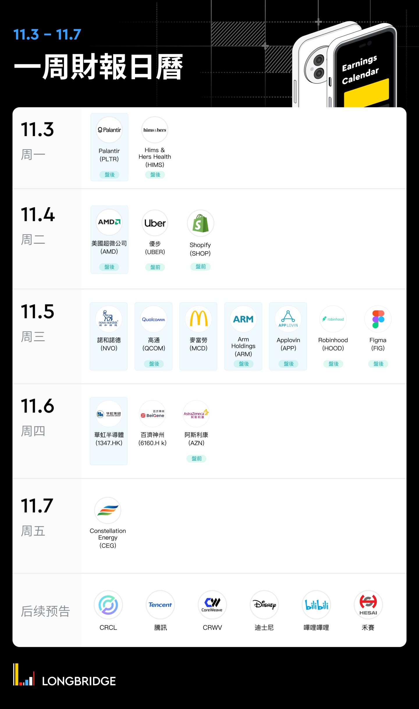 📅 一周財報日曆(11 月 3 日-11 月 7 日)一鍵保存