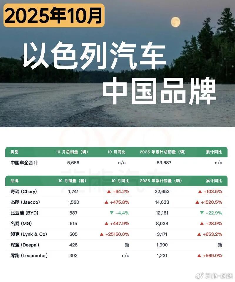 2025 年 10 月的以色列車市,中國品牌憑藉價格競爭力、產品更新速度和廣泛的供應網絡,已在當地形成規模效應。