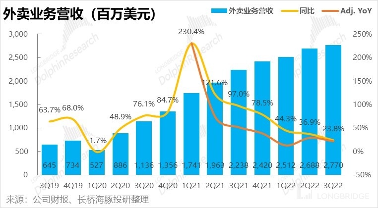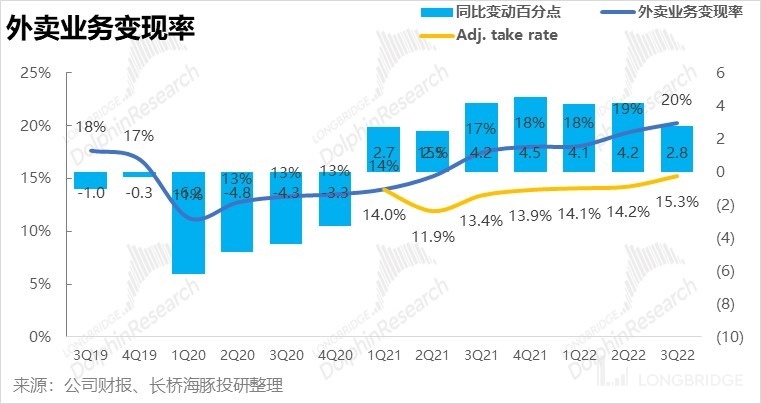 2)主要超預期的板塊是外賣業務,本季實現 Adj.EBITDA 1.8 億,遠遠超出市場預期的 0.4 億,海豚君認為超預期的變現率提升應當是主因