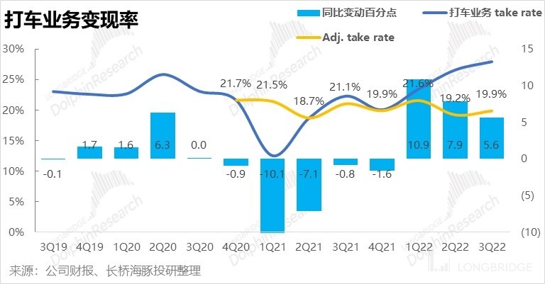 拉長趨勢來看,打車業務的變現率並未如名義數據那般持續提升,相比 2019 年同期實際還有邊際下行的趨勢。