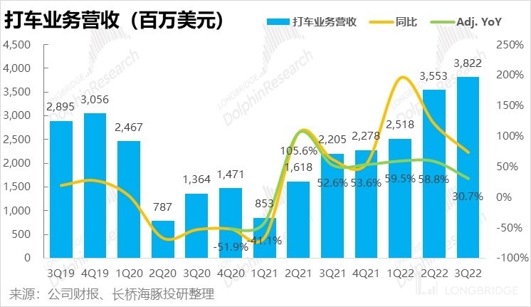 具體來看,本季打車業務營收 38.2 億美元,同比增速高達 73%,明顯高於市場預期的 36.2 億美元。
