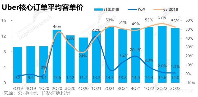 海豚君認為,毛利上升的主要原因在於外賣業務的變現率提高,此外 Uber 的成本變動更多和訂單量增速相關,而收入則更與訂單金額相關,因此客單價提升的利好也會有所反映在毛利率提升上。