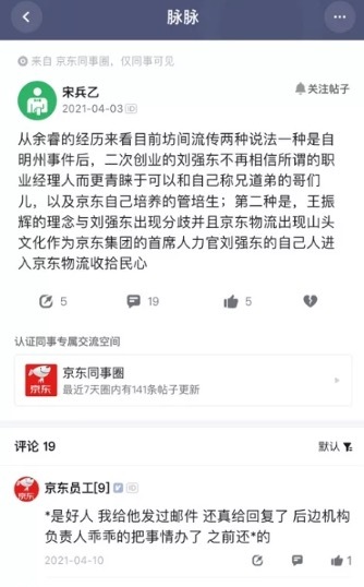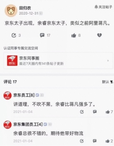 就在今年 4 月徐雷扶正之前,京東內部一直公認餘睿是 “東宮太子”。