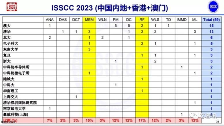 我們再回顧 ISSCC 2023 中國收錄的論文分佈(內地、香港、澳門)