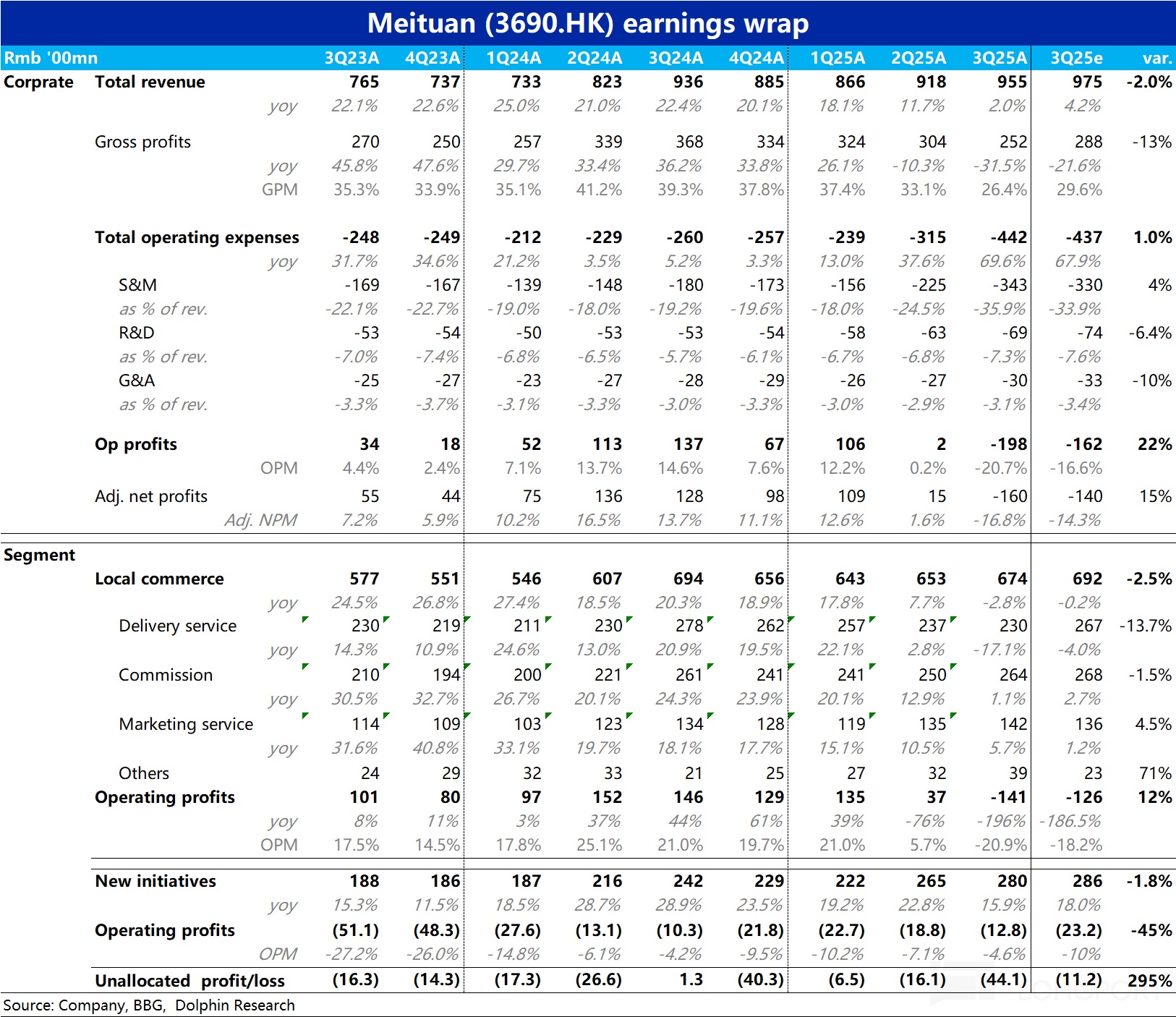 美團(紀要):3Q 虧損見頂、但 4Q 會延續虧損趨勢