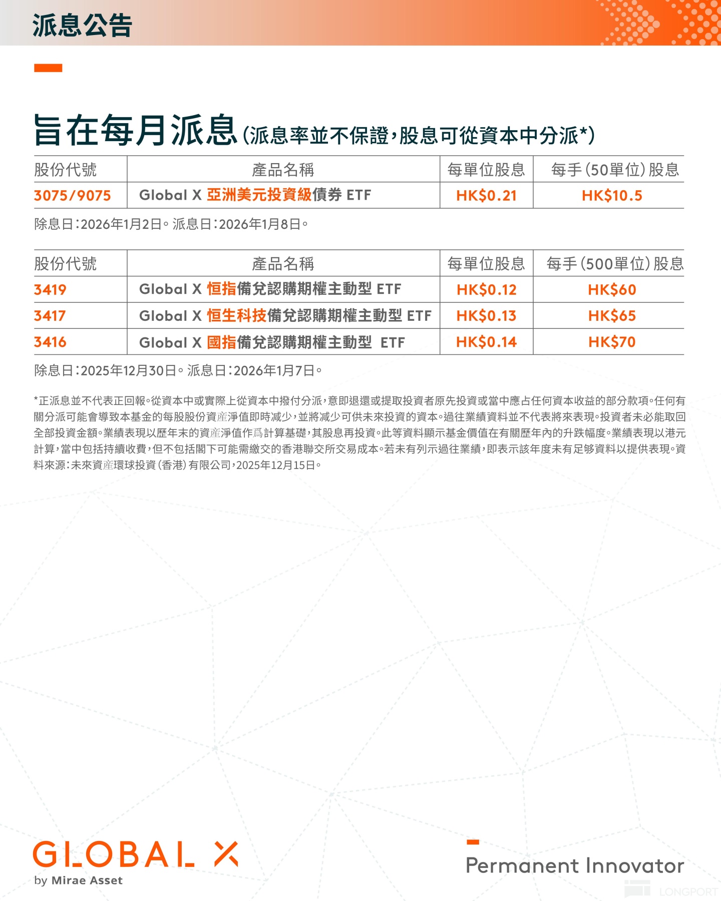 Global X 恒指成份股備兑認購期權主動型 ETF(3419)$A GX恆指備兌(03419.HK) $恆生指數(00HSI.HK)