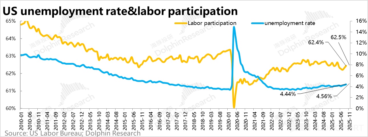 這樣,在 11 月勞動參與率小幅回升的情況下,美國 11 月失業率已經躥升到了 4.56%,已經超出了美聯儲的失業率目標。