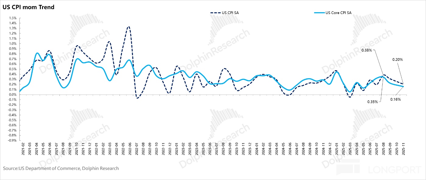 三季度 GDP 表現亮眼,但是通脹還有點壓力的話,從四季度 10 月和 11 月的 CPI 來看,通脹似乎壓力也不大了。雖然 10 月 CPI 永久性缺失了,但如果拿 11 月數據和 9 月對比,美國 11 月核心 CPI 指數在 9 月份的基礎上,兩個月的合計增長幅度只有 0.16%,是明確較低的增長幅度。