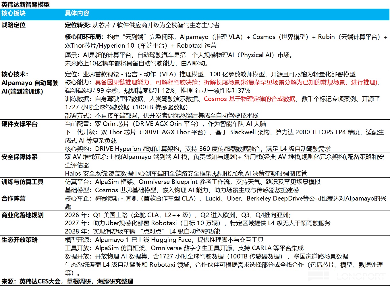c. 生態賦能者英偉達,剛剛宣佈要聯合主機廠、出行平台(Uber)形成 “開源聯盟”,可能成為改變戰局的關鍵變量。