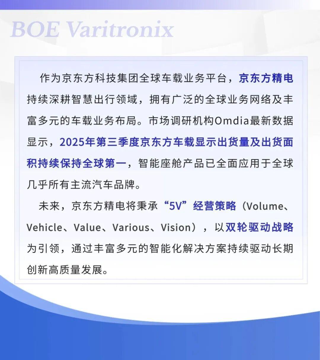 CES 2026 不僅是京東方精電展示綠色科技與生態協同成果的舞台,更是面向未來踐行科技創新與可持續發展承諾的全新起點。未來,京東方精電還將持續推動綠色產品創新、構建綠色運營體系、深化全球生態合作,全面穩步邁向 “開放包容、創新引領、永續生態” 的產業未來,攜手全球合作伙伴為萬千用户創造更具價值、更可持續的科技體驗。