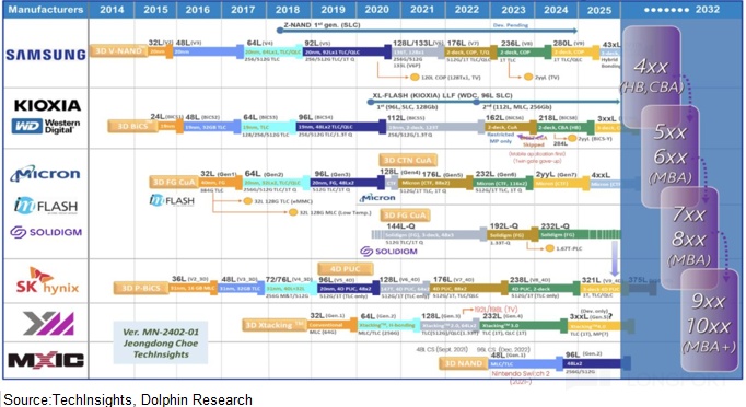 如果從供需兩端的絕對量來看,海豚君也認為 NAND 的供需局面在 2026 年和 2027 年將持續緊張。由於 NAND 的擴產不一定需要 “新建產線 ”,通過層數的升級也能實現產量的提升,存儲廠商對 NAND 方面的投入並不大。
