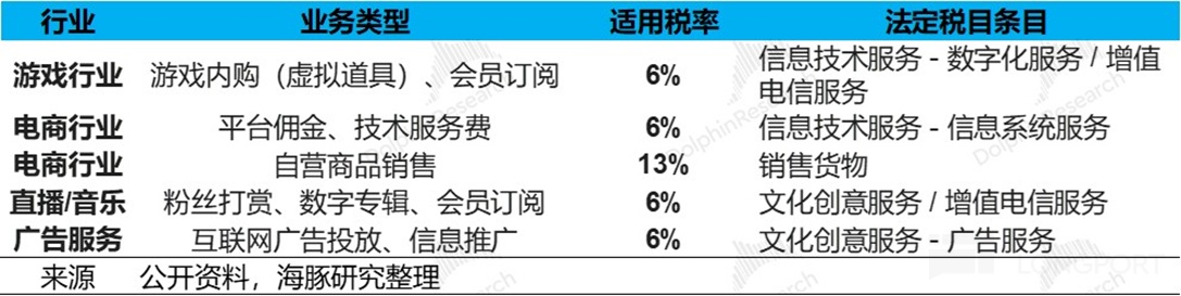 法律層面,還是增值税 6%、9%、13% 三檔税率不變,其中 6% 是現代服務、增值服務;9% 是基礎服務,13% 更多是與自營賣貨有關。