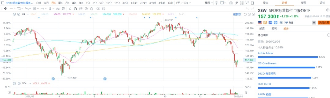 以 SPDR 的軟件 ETF 為例,自從關税修復後,近半年都是承壓震盪下行,而且在最近下行的尤其厲害,像 Adobe、Unity、Roblox、Applovin 等都迭跌的很厲害!$Adobe(ADBE.US) $Unity Software(U.US) $羅布樂思(RBLX.US) $AppLovin(APP.US)