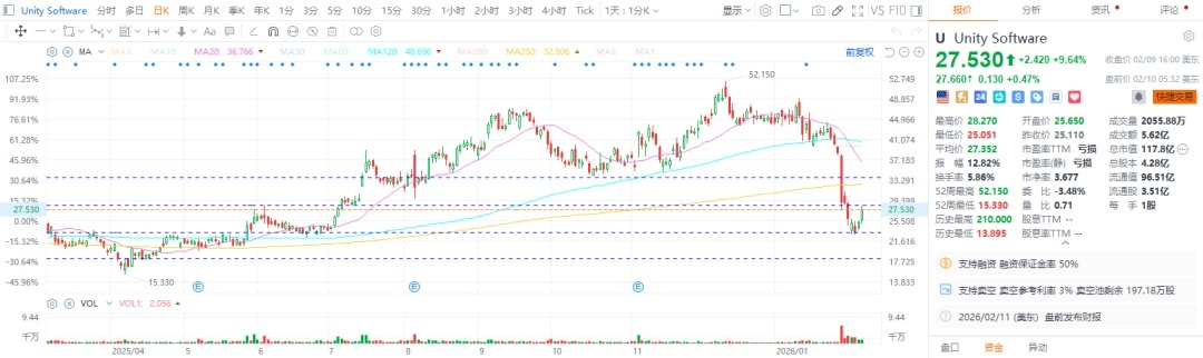 Unity 近期股價直接腰斬,Adobe 為代表的這種面臨 AI 轉型打個問號的公司跌了 2 年了,哪怕是 AI 應用的強者 Applovin 也被行業拖累大跌!