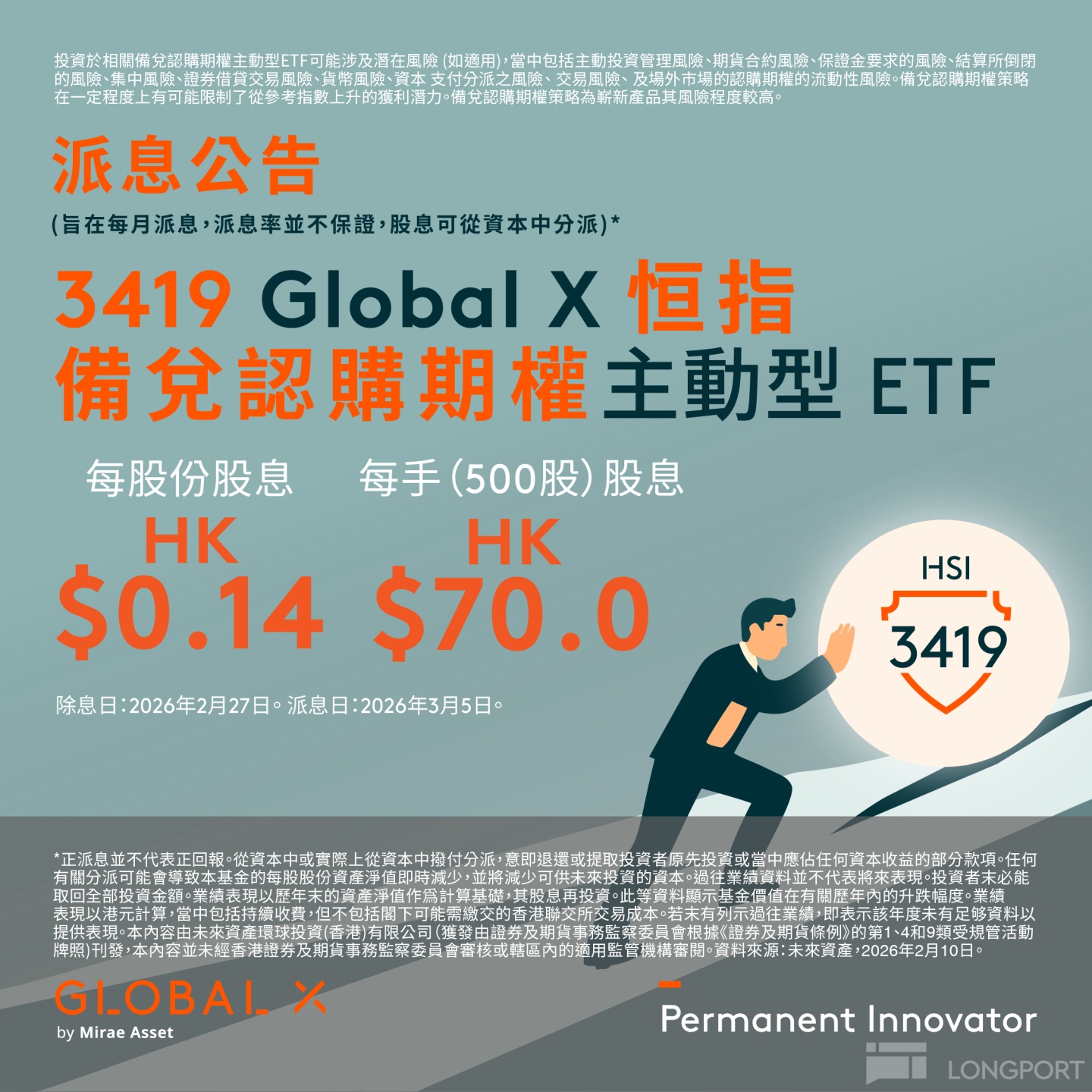 Global X 恒指備兑認購期權主動型 ETF(3419) $A GX恆指備兌(03419.HK) $恆生指數(00HSI.HK)
