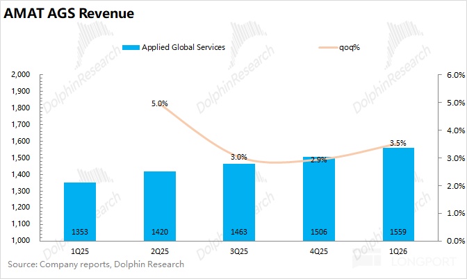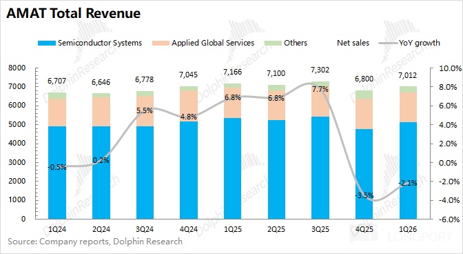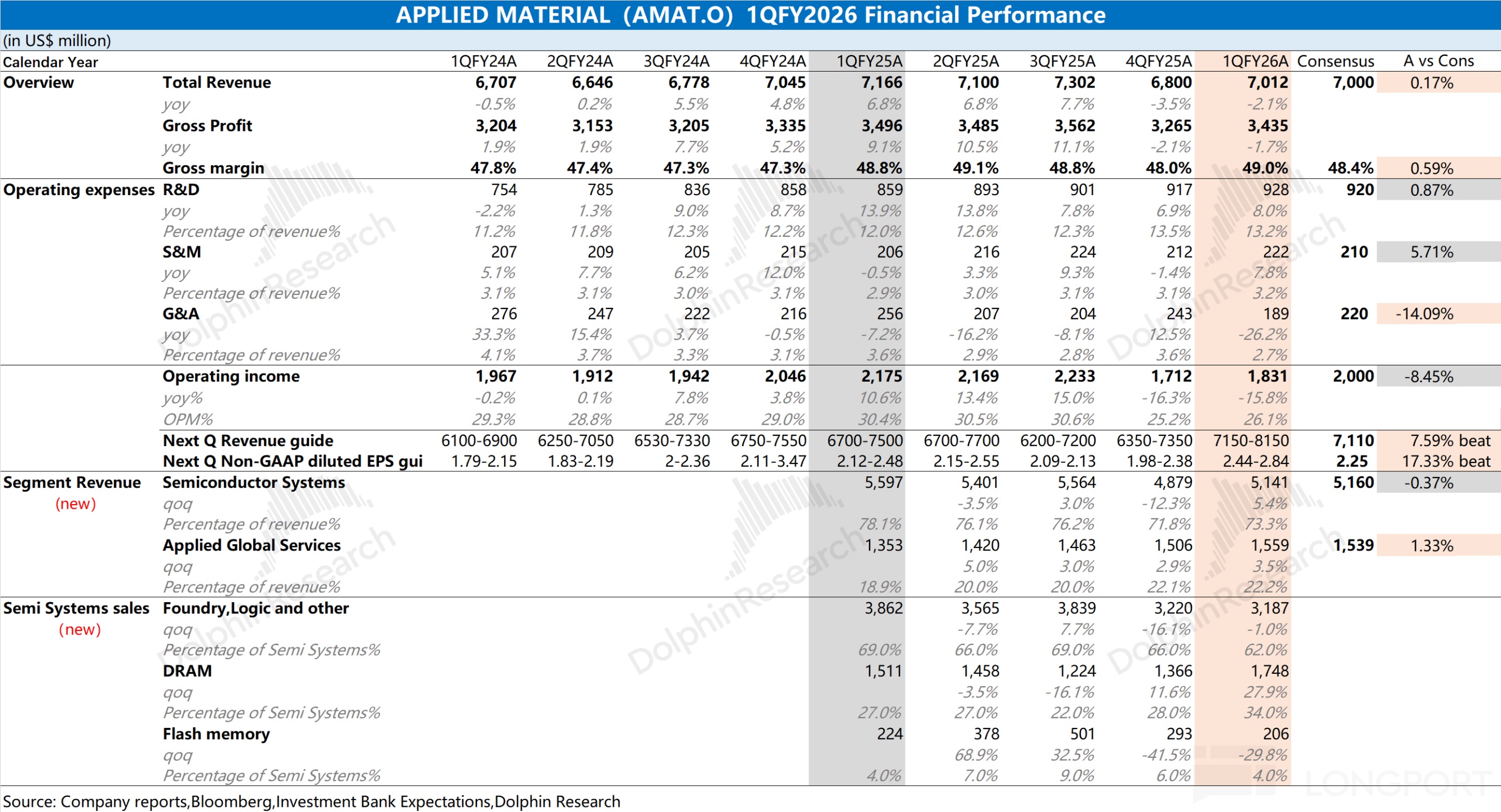 值得注意的是,公司本季度調整了報表口徑。公司將 200 毫米設備業務轉入半導體系統部門,而此前包含在應用全球服務中。還將顯示器業務一併歸入到 “其他” 類別中,更加凸顯公司的核心業務表現。