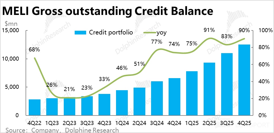 金融板塊內更重要的信貸業務上,本季總貸款餘額達$110 億,同比大增 90%,維持着高速增長。