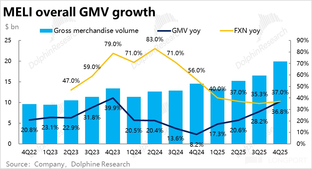公司基石的電商業務,本季整體 GMV 在美元口徑下同比增長近 37%,相比上季的 28% 大幅提速,顯著高於市場預期。