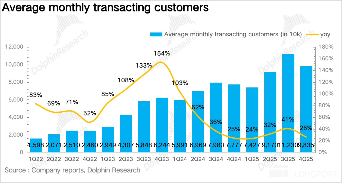瑞幸咖啡(LKNCY)於北京時間 2026 年 2 月 26 日下午美股盤前發佈了 2025 年第四季度財報(截止 2025 年 12 月),整體上,四季度在外賣補貼力度減弱疊加瑞幸自身補貼收縮的背景下,收入端明顯放緩,而 “外賣大戰” 導致配送費用飆升的影響在四季度對利潤的侵蝕程度仍然不小,整體表現低於市場預期。$瑞幸咖啡(ADR)(LKNCY.US)