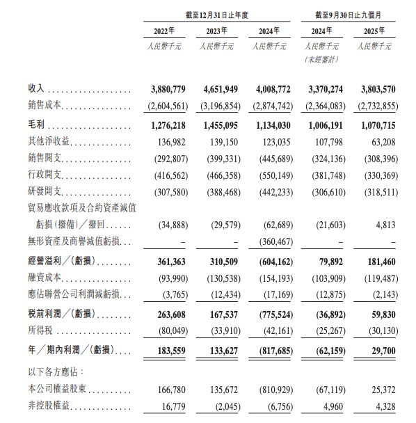 財務方面,2022 年度、2023 年度、2024 年度、2025 年前三季度,埃斯頓實現收入分別約 38.81 億元、46.52 億元、40.09 億元、38.04 億元;同期,錄得年/期內利潤分別約 1.84 億元、1.34 億元、-8.18 億元、2970 萬元。