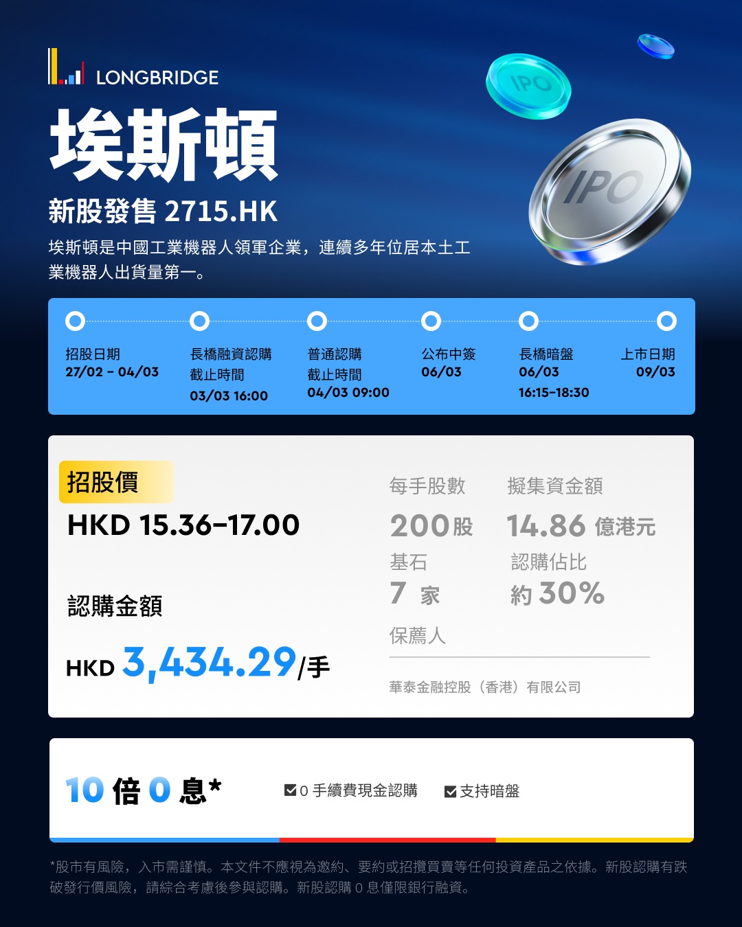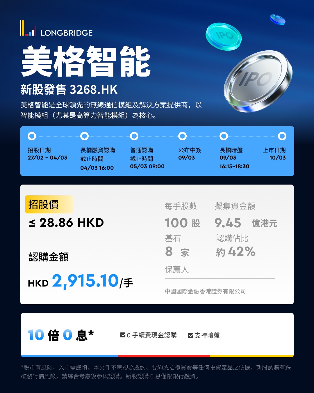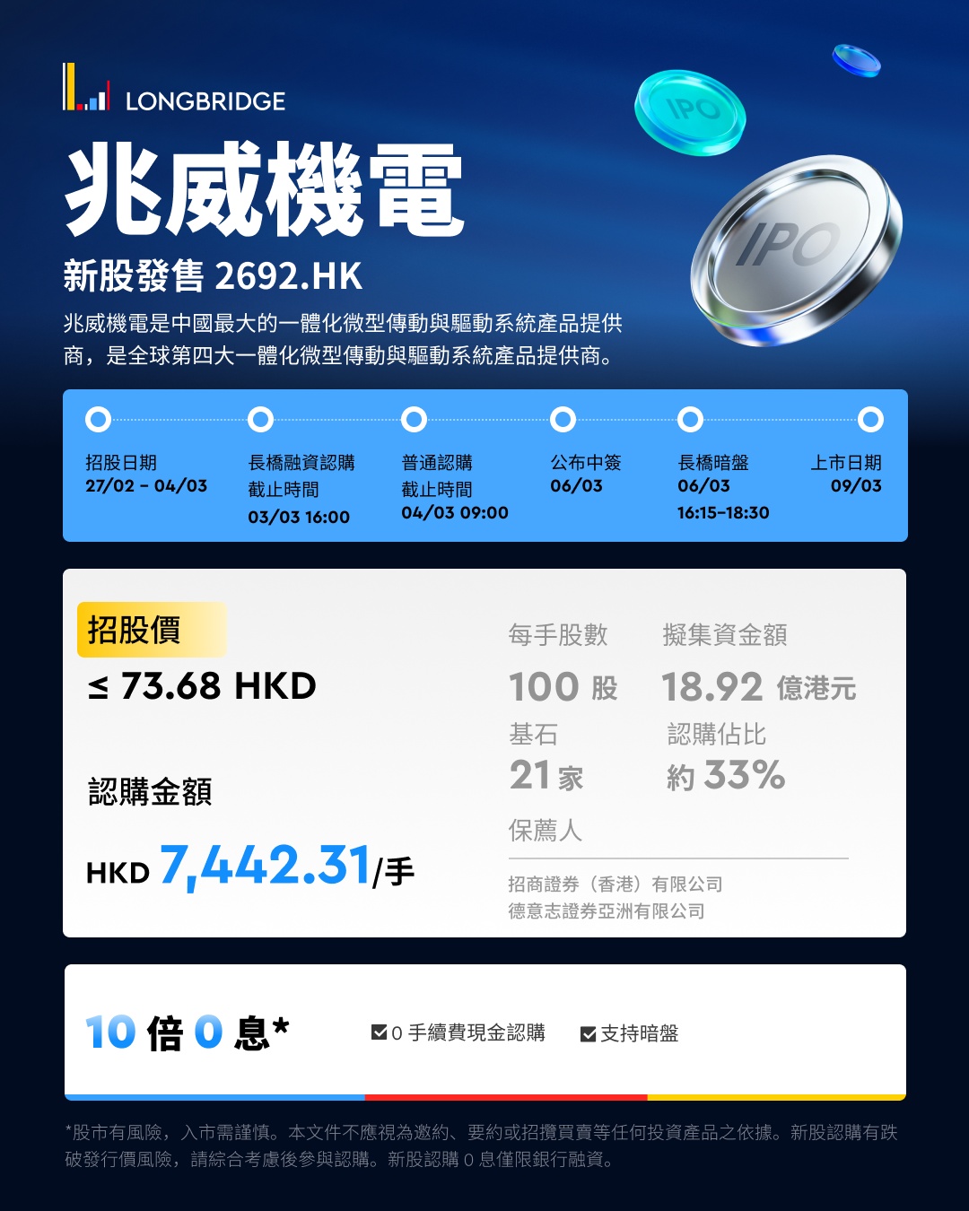 - 打新神器: 別忘了長橋的 10 倍 0 息 絕技,讓你的中籤率直接起飛!🚀