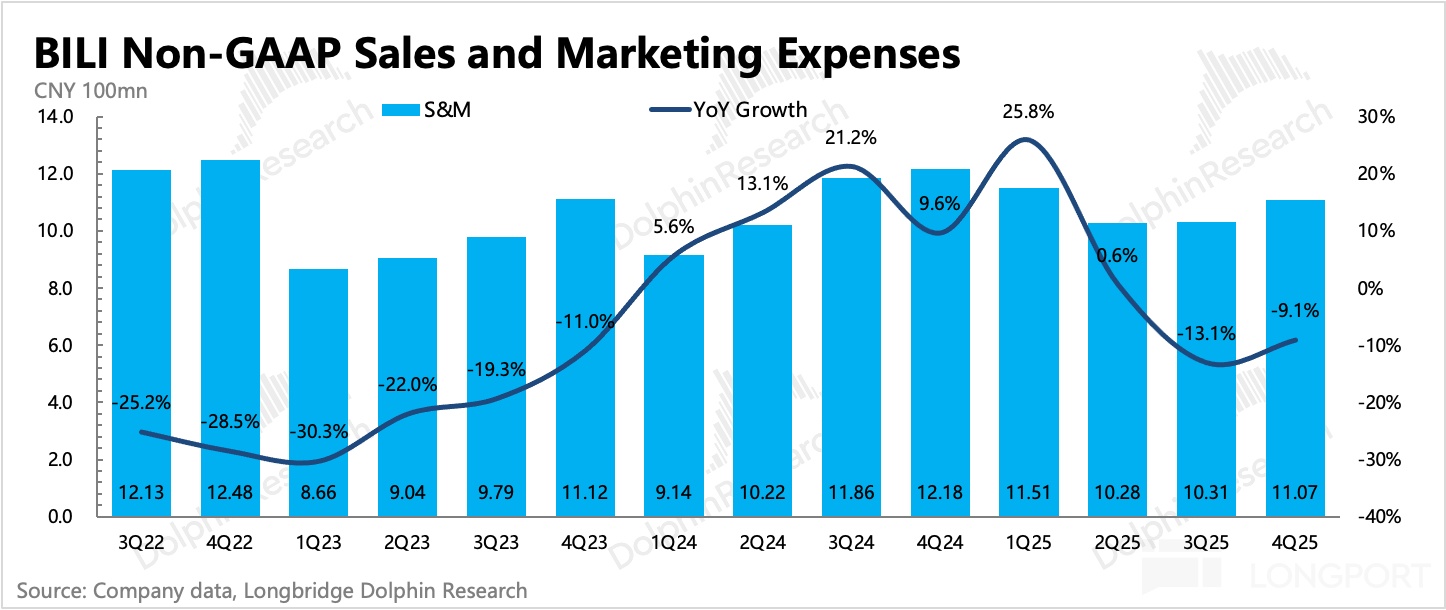 在年初的營銷大會上,公司強調 2026 年將繼續放開廣告庫存,同時推出一站式廣告投流平台。我們認為,由於目前 B 站的廣告加載率仍有釋放空間,本身規模基數在行業中也不算高,因此有望在短中期繼續享受高增長的紅利期。