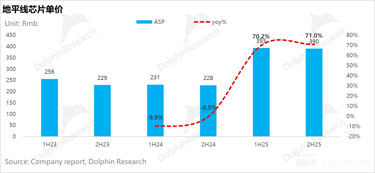 出貨單價(ASP)停滯: 2H25 芯片單價約 390 元,環比 1H25 持平,大幅低於預期的 510 元。