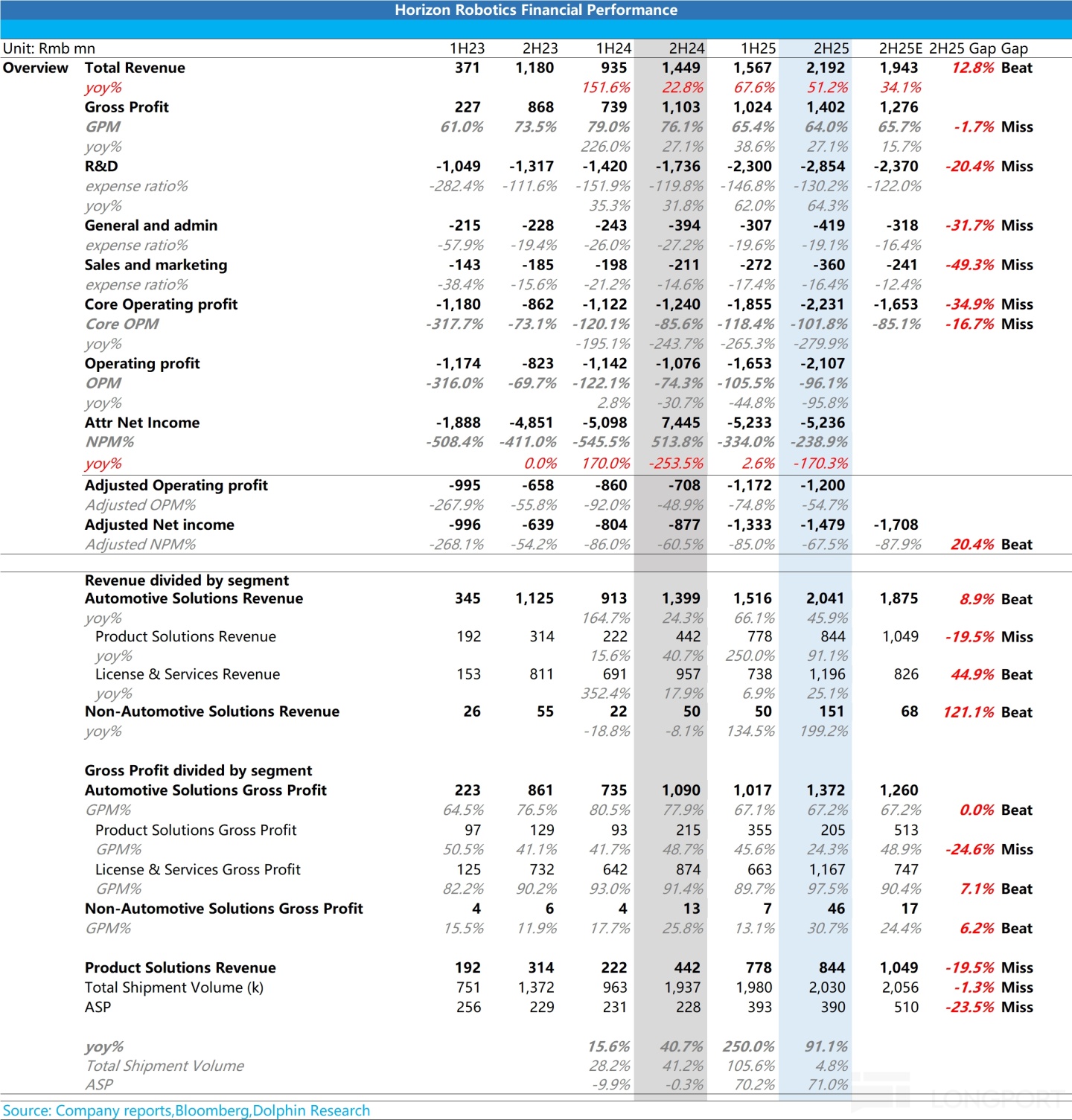 $地平線機器人-W(09660.HK) 於北京時間 2026 年 3 月 19 日港股盤後發佈了 2025 年下半年財報。此次財報表現並不及預期,具體來看: