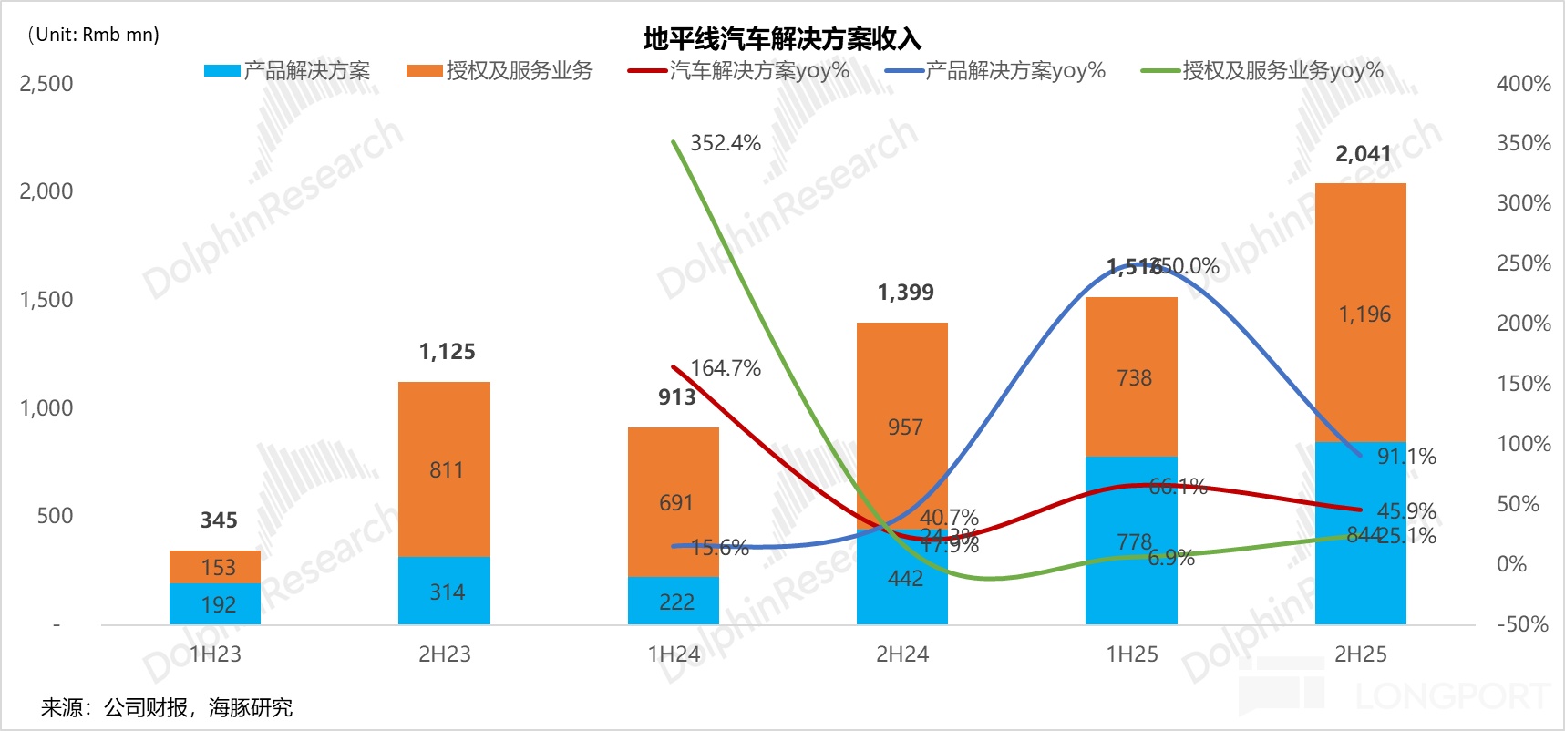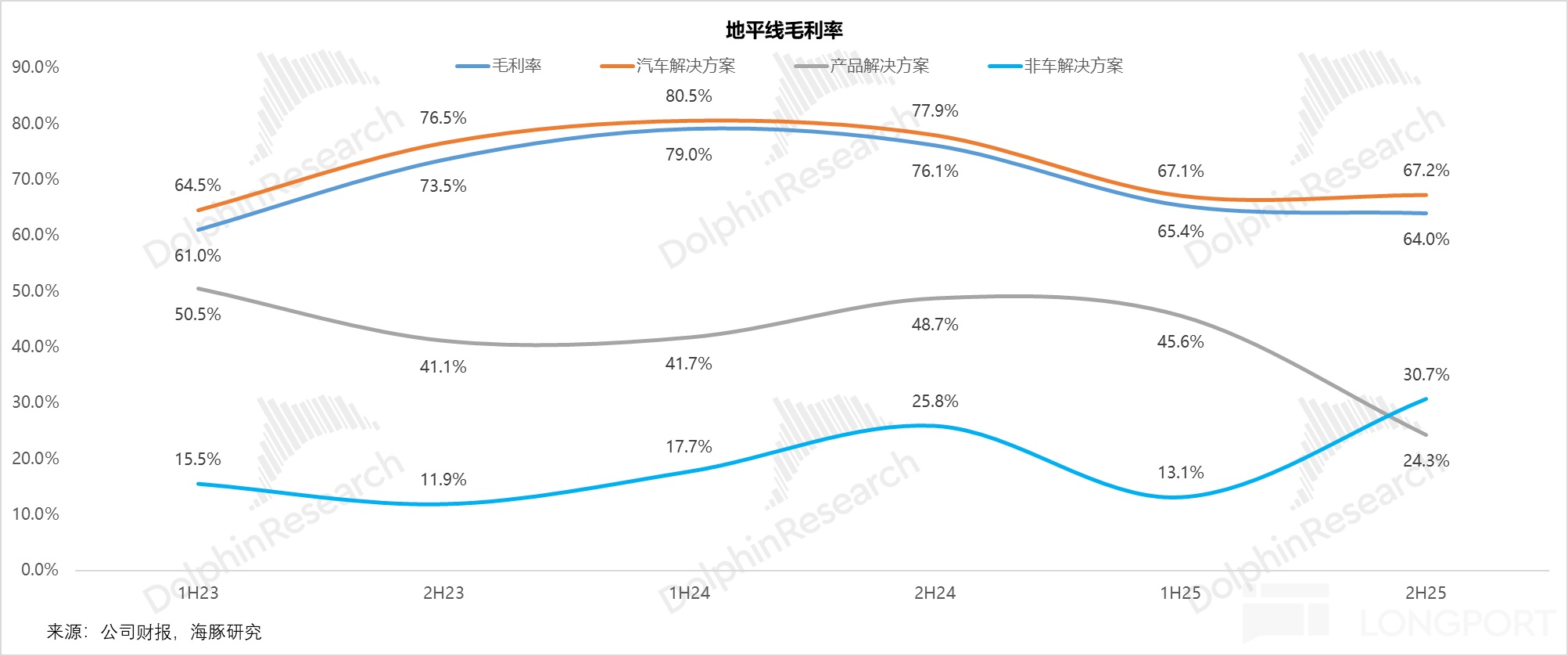 3)毛利率驟降:戰略性的 “系統級交付” 與掩蓋不住的競爭壓力:2H25 整體毛利率 64%,環比下滑 1.4 個百分點,低於預期的 65.7%。儘管高毛利(97.5%)的授權業務佔比提升,但產品解決方案業務毛利率從 1H25 的 45.6% 驟降至 24.3%,嚴重拖累全局。海豚君認為驟降的毛利率主要有兩方面原因: