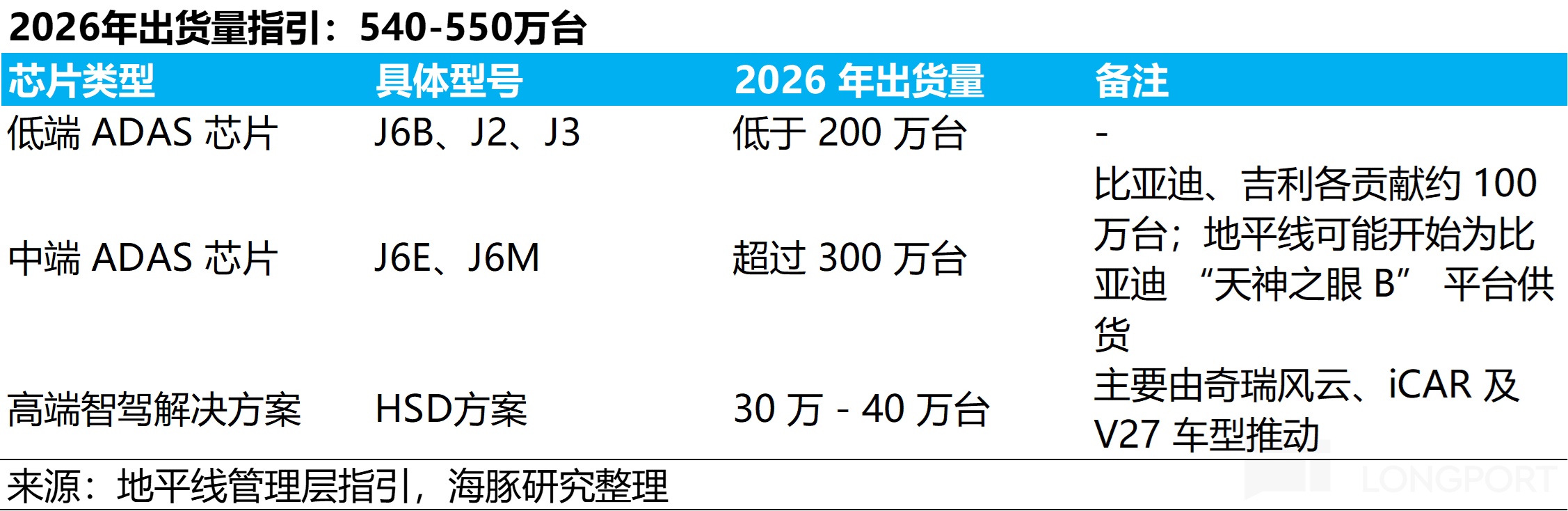 中端 ADAS(J6E/M): 突破 300 萬顆。管理層預計比亞迪和吉利將各自貢獻約 100 萬顆銷量,且地平線將在 2026 年打入比亞迪 “天神之眼 B” 智駕體系。