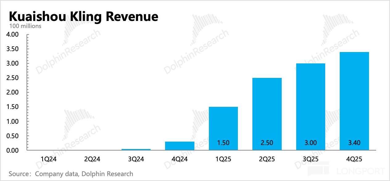 我們預計隨着更多 AI 收入的確認,後續 AI 投入對利潤的影響還會加大(公司指引今年會侵蝕利潤率)。至於資金是否認可這個投入對經營槓桿的削弱(即不調低估值倍數),就得看是否帶來了更高的業務增速或者成長想象力——傳統業務能否打破自然放緩趨勢,實現增速反彈?或者是可靈能否抵抗住競爭和行業變化,維持環比增長的高成長態勢?